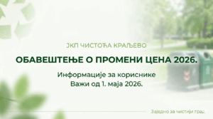 САОПШТЕЊЕ ЈКП “ЧИСТОЋА” КРАЉЕВО